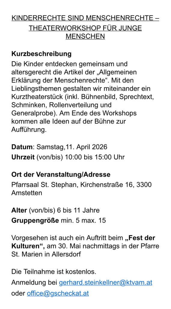 office@gscheckat.at oder gerhard.steinkellner@ktvam.at
